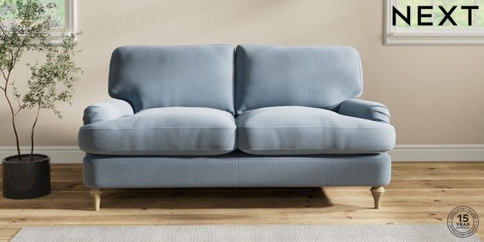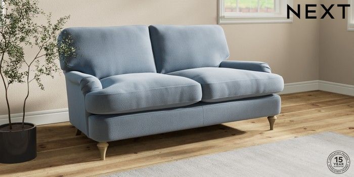 7.2.10 Sadie Deep Relaxed Sit 2 Seater Sofa Relaxed Linen Look Mid Blue High Slim Turned - Light | Made Click here to use our website with more accessibility support, for example screen readers