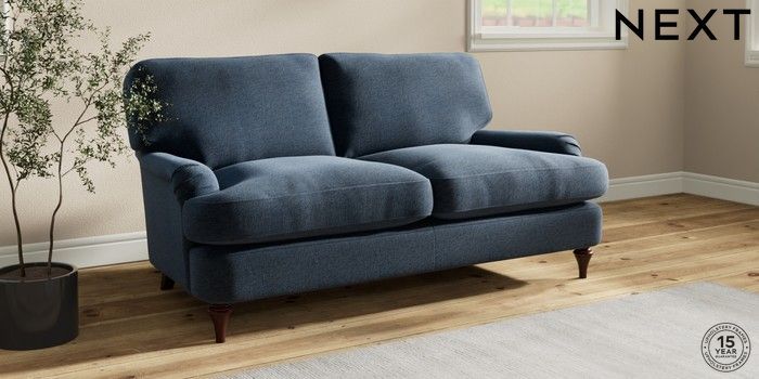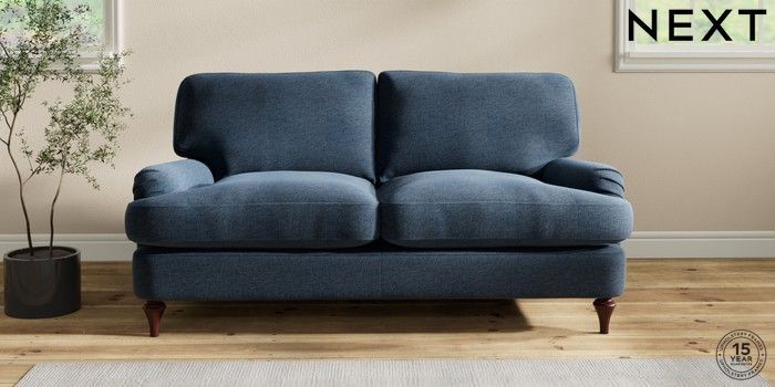 7.2.10 Sadie Deep Relaxed Sit 2 Seater Sofa Ripple Chenille Dark Blue High Slim Turned - Dark Brown | Made Click here to use our website with more accessibility support, for example screen readers