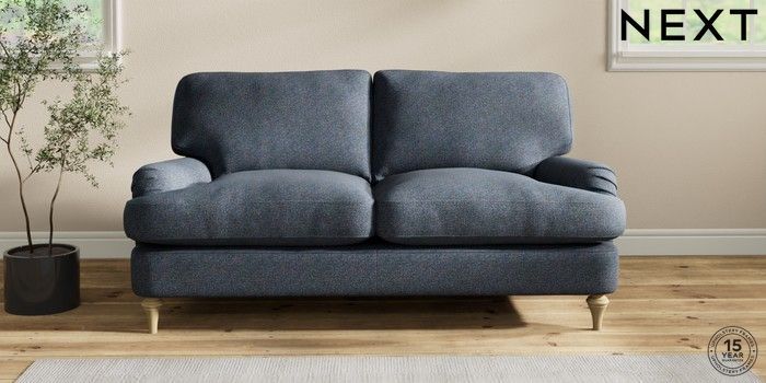 7.2.10 Sadie Deep Relaxed Sit 2 Seater Sofa Tweedy Chenille Navy Blue High Slim Turned - Light | Made Click here to use our website with more accessibility support, for example screen readers