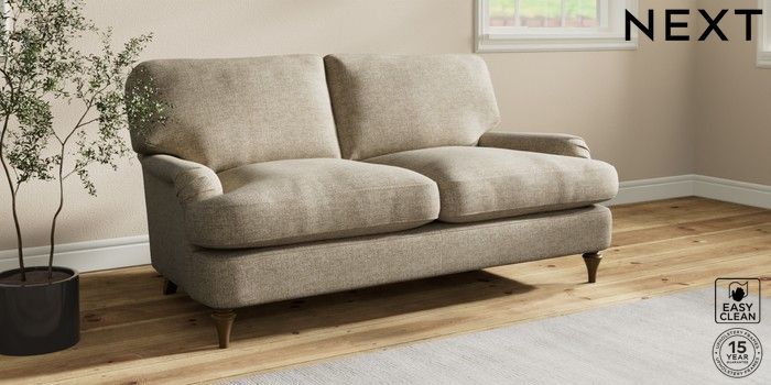 7.2.10 Sadie Deep Relaxed Sit 2 Seater Sofa Woven Chenille Easy Clean Mid Natural High Slim Turned - Mid | Made Click here to use our website with more accessibility support, for example screen readers
