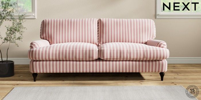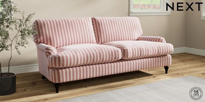 7.2.10 Sadie Deep Relaxed Sit 3 Seater Sofa Bold Chenille Stripe Dark Pink High Slim Turned - Dark | Made Click here to use our website with more accessibility support, for example screen readers