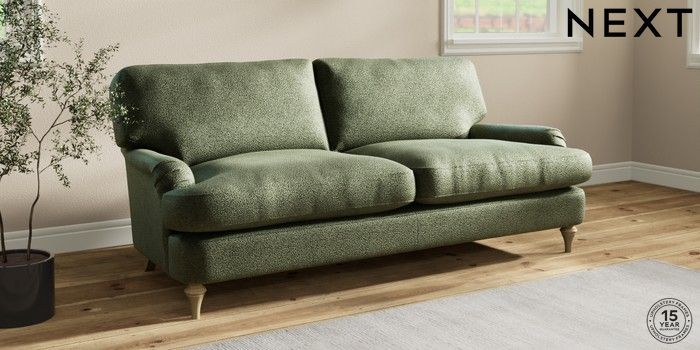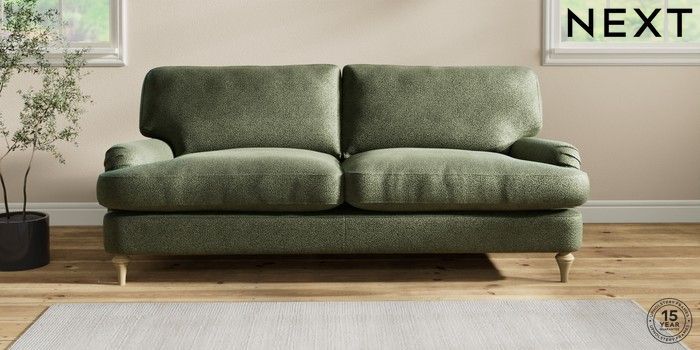 7.2.10 Sadie Deep Relaxed Sit 3 Seater Sofa Boucle Chenille Dark Moss Green High Slim Turned - Light | Made Click here to use our website with more accessibility support, for example screen readers