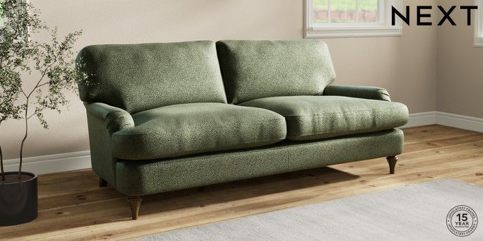 7.2.10 Sadie Deep Relaxed Sit 3 Seater Sofa Boucle Chenille Dark Moss Green High Slim Turned - Mid | Made Click here to use our website with more accessibility support, for example screen readers