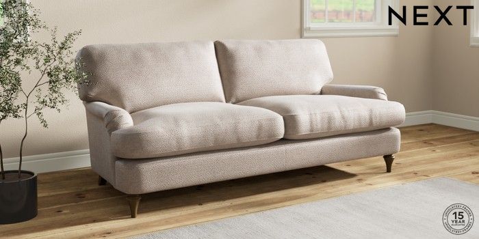 7.2.10 Sadie Deep Relaxed Sit 3 Seater Sofa Boucle Chenille Light Natural High Slim Turned - Mid | Made Click here to use our website with more accessibility support, for example screen readers