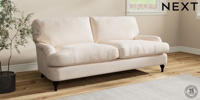 7.2.10 Sadie Deep Relaxed Sit 3 Seater Sofa Boucle Chenille Oyster High Slim Turned - Dark | Made Click here to use our website with more accessibility support, for example screen readers