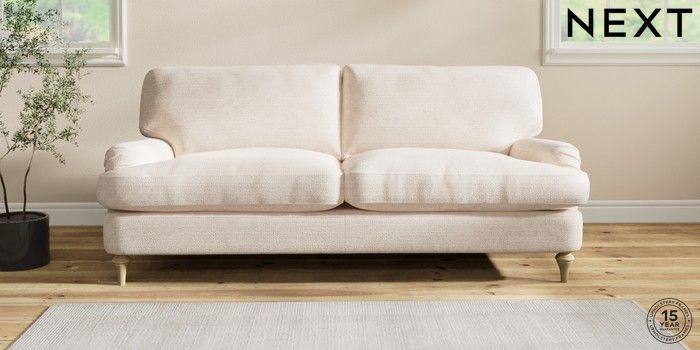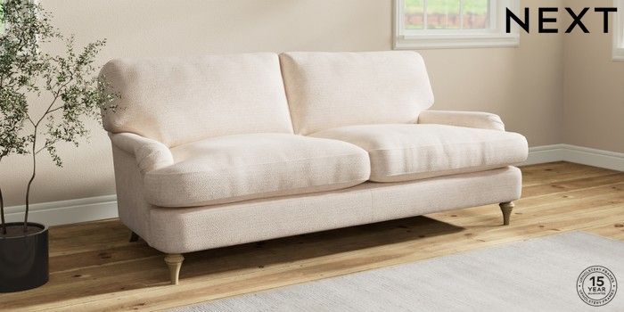 7.2.10 Sadie Deep Relaxed Sit 3 Seater Sofa Boucle Chenille Oyster High Slim Turned - Light | Made Click here to use our website with more accessibility support, for example screen readers