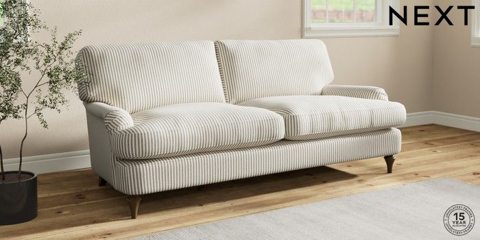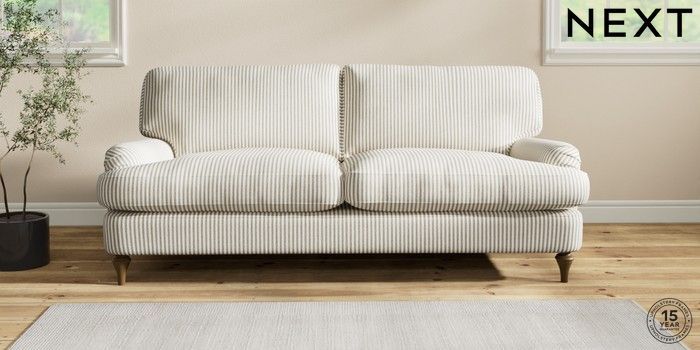 7.2.10 Sadie Deep Relaxed Sit 3 Seater Sofa Chenille Stripe Moss Green High Slim Turned - Mid | Made Click here to use our website with more accessibility support, for example screen readers