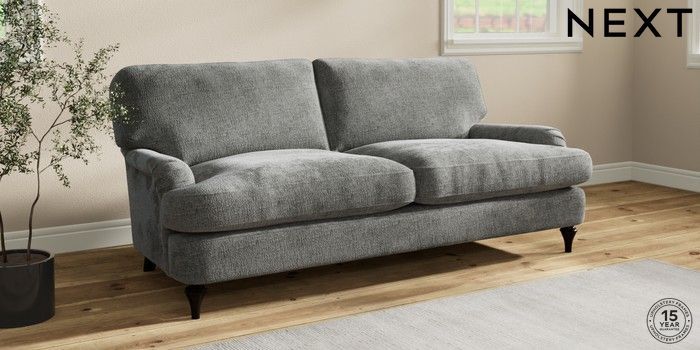 7.2.10 Sadie Deep Relaxed Sit 3 Seater Sofa Chunky Chenille Dark Grey High Slim Turned - Dark | Made Click here to use our website with more accessibility support, for example screen readers