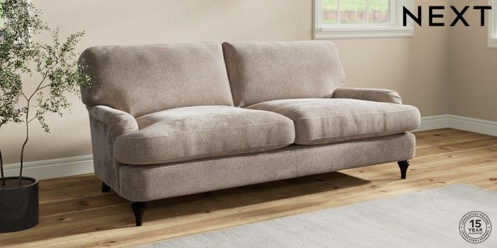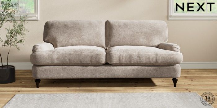 7.2.10 Sadie Deep Relaxed Sit 3 Seater Sofa Chunky Chenille Light Dove High Slim Turned - Dark | Made Click here to use our website with more accessibility support, for example screen readers