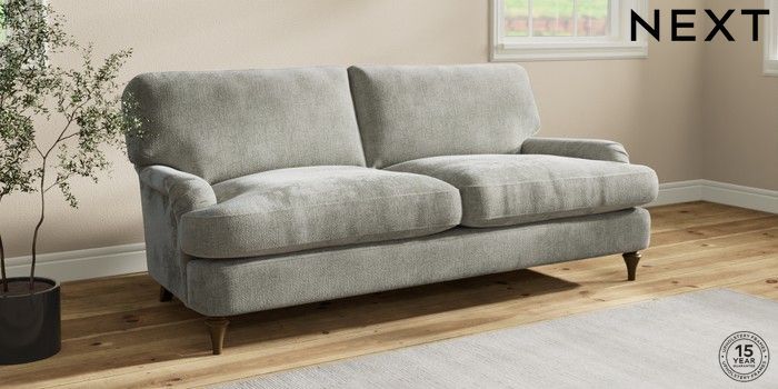 7.2.10 Sadie Deep Relaxed Sit 3 Seater Sofa Chunky Chenille Light Grey High Slim Turned - Mid | Made Click here to use our website with more accessibility support, for example screen readers