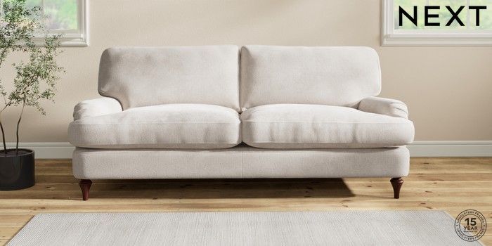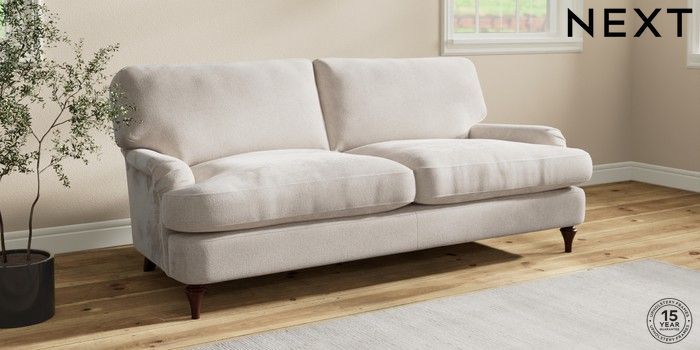 7.2.10 Sadie Deep Relaxed Sit 3 Seater Sofa Chunky Chenille Oyster High Slim Turned - Dark Brown | Made Click here to use our website with more accessibility support, for example screen readers