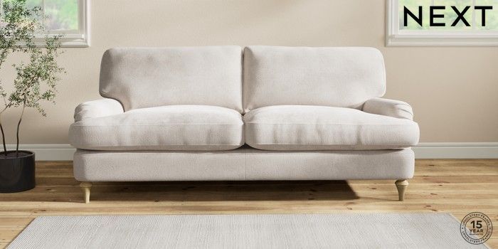 7.2.10 Sadie Deep Relaxed Sit 3 Seater Sofa Chunky Chenille Oyster High Slim Turned - Light | Made Click here to use our website with more accessibility support, for example screen readers