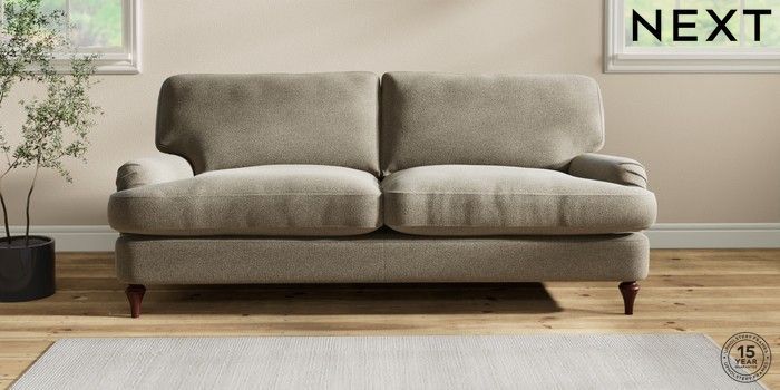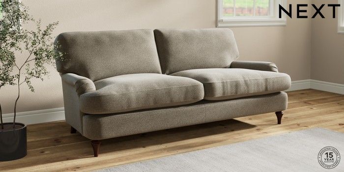 7.2.10 Sadie Deep Relaxed Sit 3 Seater Sofa Chunky Marl Light Olive Green High Slim Turned - Dark Brown | Made Click here to use our website with more accessibility support, for example screen readers