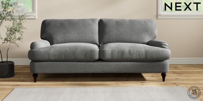 7.2.10 Sadie Deep Relaxed Sit 3 Seater Sofa Chunky Texture Dark Grey High Slim Turned - Dark | Made Click here to use our website with more accessibility support, for example screen readers
