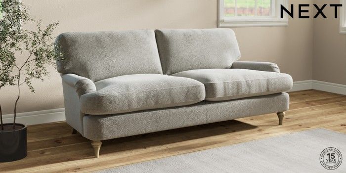 7.2.10 Sadie Deep Relaxed Sit 3 Seater Sofa Chunky Texture Dove High Slim Turned - Light | Made Click here to use our website with more accessibility support, for example screen readers
