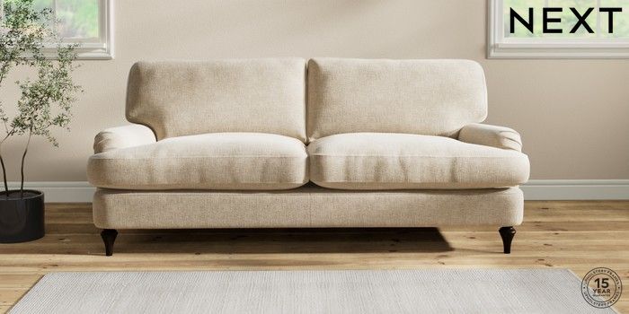 7.2.10 Sadie Deep Relaxed Sit 3 Seater Sofa Chunky Weave Cream High Slim Turned - Dark | Made Click here to use our website with more accessibility support, for example screen readers