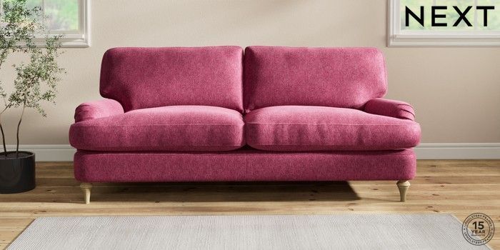 7.2.10 Sadie Deep Relaxed Sit 3 Seater Sofa Cotswold Chenille Dark Raspberry Pink High Slim Turned - Light | Made Click here to use our website with more accessibility support, for example screen readers