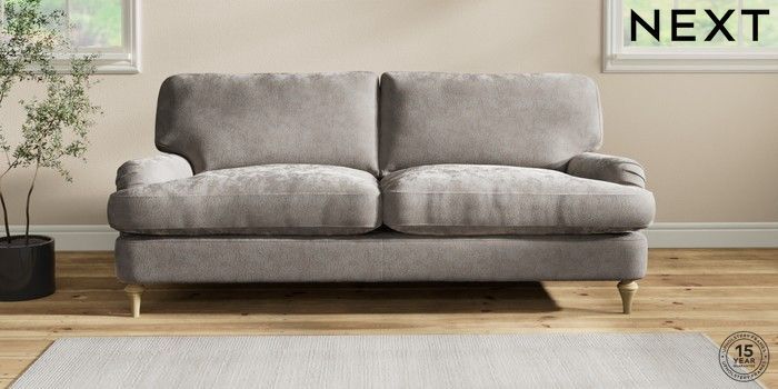 7.2.10 Sadie Deep Relaxed Sit 3 Seater Sofa Distressed Velour French Grey High Slim Turned - Light | Made Click here to use our website with more accessibility support, for example screen readers