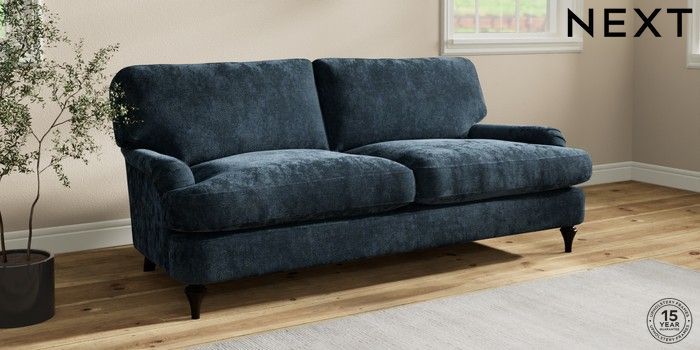7.2.10 Sadie Deep Relaxed Sit 3 Seater Sofa Distressed Velour Midnight Blue High Slim Turned - Dark | Made Click here to use our website with more accessibility support, for example screen readers