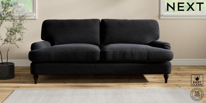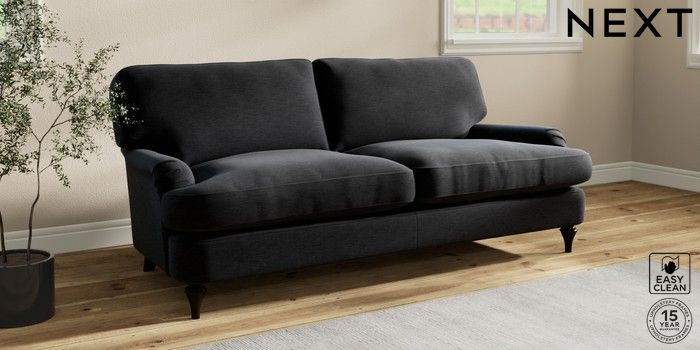 7.2.10 Sadie Deep Relaxed Sit 3 Seater Sofa Fine Chenille Easy Clean Black High Slim Turned - Dark | Made Click here to use our website with more accessibility support, for example screen readers