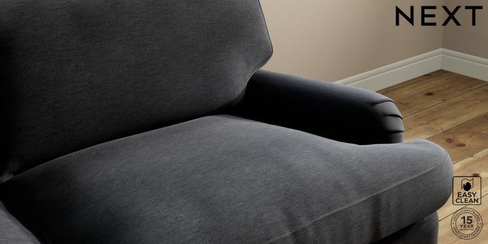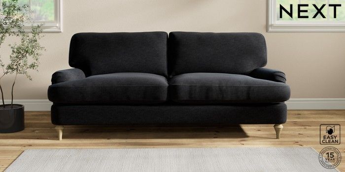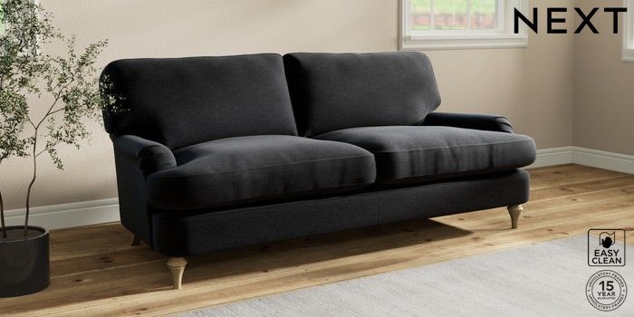 7.2.10 Sadie Deep Relaxed Sit 3 Seater Sofa Fine Chenille Easy Clean Black High Slim Turned - Light | Made Click here to use our website with more accessibility support, for example screen readers