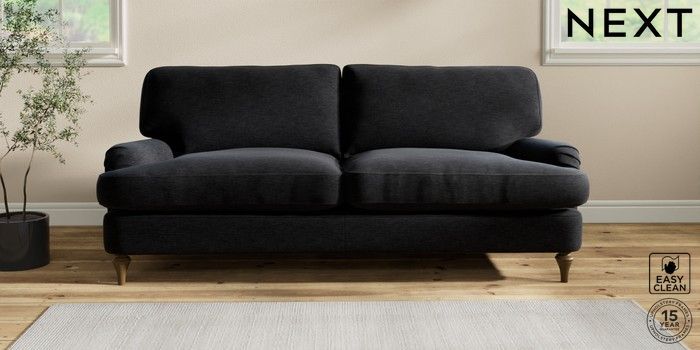 7.2.10 Sadie Deep Relaxed Sit 3 Seater Sofa Fine Chenille Easy Clean Black High Slim Turned - Mid | Made Click here to use our website with more accessibility support, for example screen readers