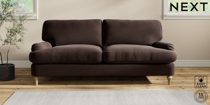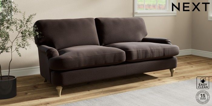7.2.10 Sadie Deep Relaxed Sit 3 Seater Sofa Fine Chenille Easy Clean Chocolate Brown High Slim Turned - Light | Made Click here to use our website with more accessibility support, for example screen readers
