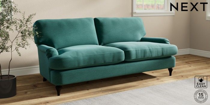 7.2.10 Sadie Deep Relaxed Sit 3 Seater Sofa Fine Chenille Easy Clean Dark Juniper Green High Slim Turned - Dark | Made Click here to use our website with more accessibility support, for example screen readers