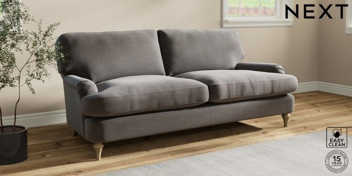 7.2.10 Sadie Deep Relaxed Sit 3 Seater Sofa Fine Chenille Easy Clean Dark Smoke Grey High Slim Turned - Light | Made Click here to use our website with more accessibility support, for example screen readers