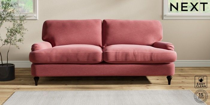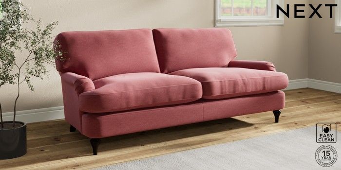 7.2.10 Sadie Deep Relaxed Sit 3 Seater Sofa Fine Chenille Easy Clean Mid Pink High Slim Turned - Dark | Made Click here to use our website with more accessibility support, for example screen readers