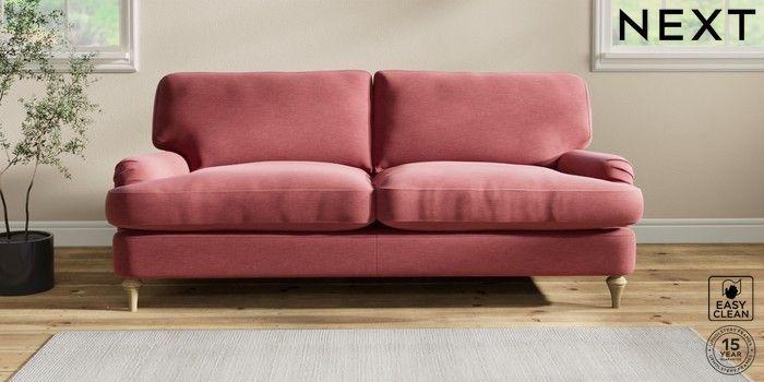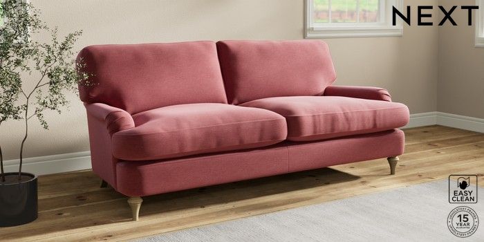 7.2.10 Sadie Deep Relaxed Sit 3 Seater Sofa Fine Chenille Easy Clean Mid Pink High Slim Turned - Light | Made Click here to use our website with more accessibility support, for example screen readers
