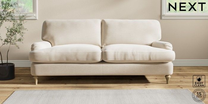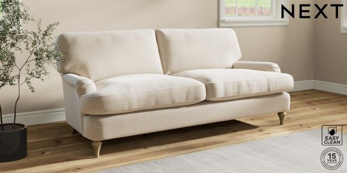 7.2.10 Sadie Deep Relaxed Sit 3 Seater Sofa Fine Chenille Easy Clean Oyster High Slim Turned - Light | Made Click here to use our website with more accessibility support, for example screen readers