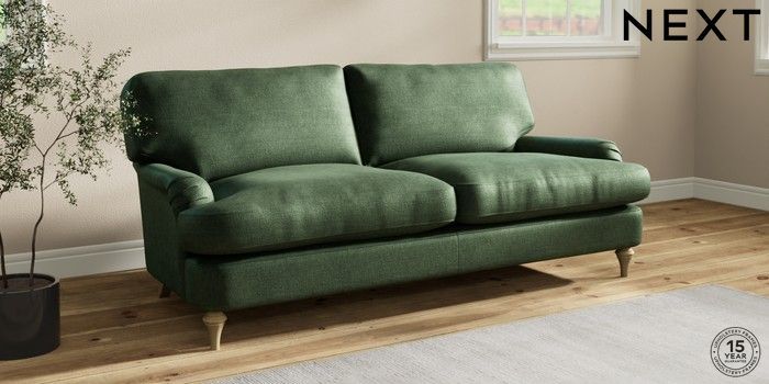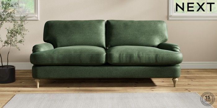 7.2.10 Sadie Deep Relaxed Sit 3 Seater Sofa Luxe Chenille Dark Green High Slim Turned - Light | Made Click here to use our website with more accessibility support, for example screen readers