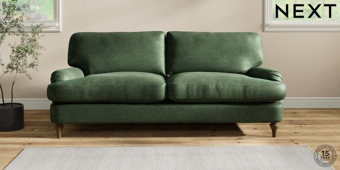 7.2.10 Sadie Deep Relaxed Sit 3 Seater Sofa Luxe Chenille Dark Green High Slim Turned - Mid | Made Click here to use our website with more accessibility support, for example screen readers