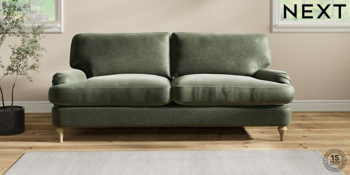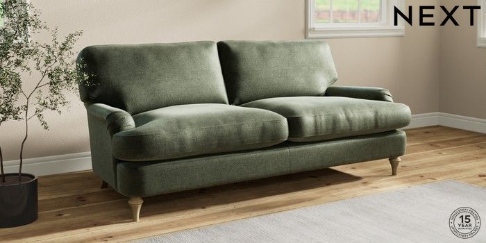 7.2.10 Sadie Deep Relaxed Sit 3 Seater Sofa Luxe Chenille Mid Green High Slim Turned - Light | Made Click here to use our website with more accessibility support, for example screen readers