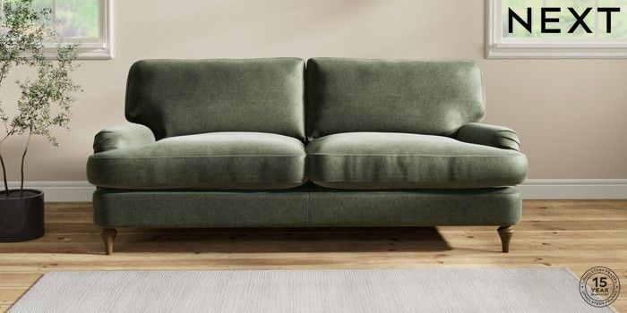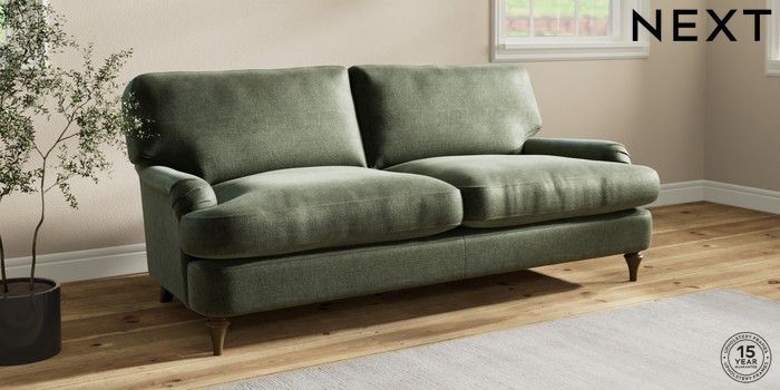 7.2.10 Sadie Deep Relaxed Sit 3 Seater Sofa Luxe Chenille Mid Green High Slim Turned - Mid | Made Click here to use our website with more accessibility support, for example screen readers