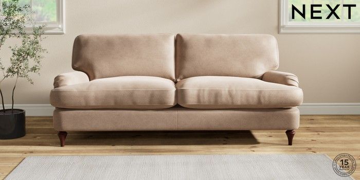 7.2.10 Sadie Deep Relaxed Sit 3 Seater Sofa Luxe Chenille Mid Natural High Slim Turned - Dark Brown | Made Click here to use our website with more accessibility support, for example screen readers
