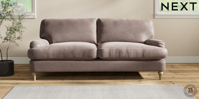 7.2.10 Sadie Deep Relaxed Sit 3 Seater Sofa Luxe Chenille Mink Brown High Slim Turned - Light | Made Click here to use our website with more accessibility support, for example screen readers