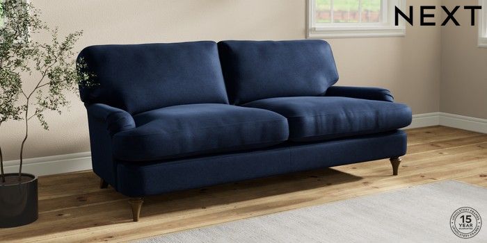 7.2.10 Sadie Deep Relaxed Sit 3 Seater Sofa Luxe Chenille Navy Blue High Slim Turned - Mid | Made Click here to use our website with more accessibility support, for example screen readers