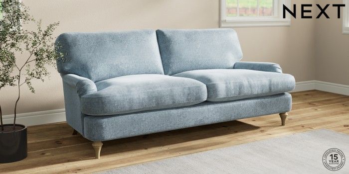 7.2.10 Sadie Deep Relaxed Sit 3 Seater Sofa Plush Chenille Light Blue High Slim Turned - Light | Made Click here to use our website with more accessibility support, for example screen readers