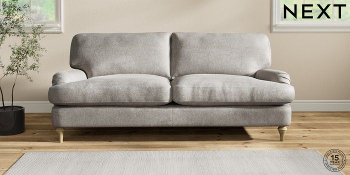 7.2.10 Sadie Deep Relaxed Sit 3 Seater Sofa Plush Chenille Light Grey High Slim Turned - Light | Made Click here to use our website with more accessibility support, for example screen readers