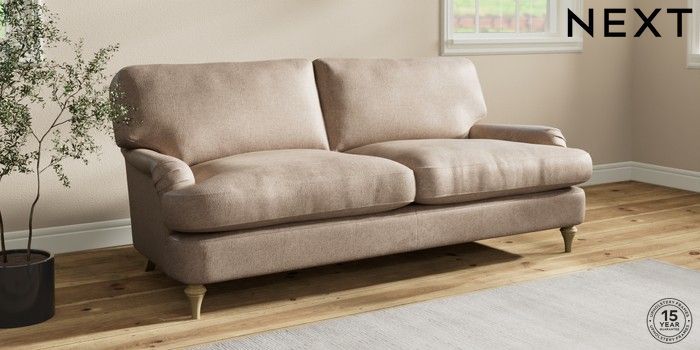7.2.10 Sadie Deep Relaxed Sit 3 Seater Sofa Plush Chenille Mid Natural High Slim Turned - Light | Made Click here to use our website with more accessibility support, for example screen readers