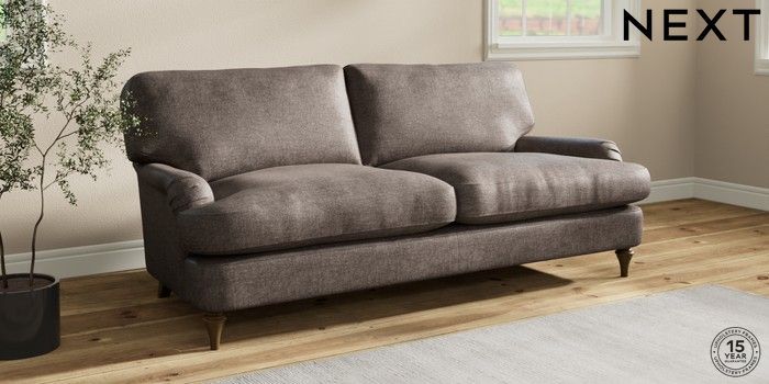 7.2.10 Sadie Deep Relaxed Sit 3 Seater Sofa Plush Chenille Mink Brown High Slim Turned - Mid | Made Click here to use our website with more accessibility support, for example screen readers