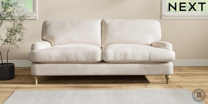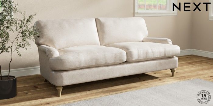 7.2.10 Sadie Deep Relaxed Sit 3 Seater Sofa Plush Chenille Oyster High Slim Turned - Light | Made Click here to use our website with more accessibility support, for example screen readers