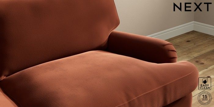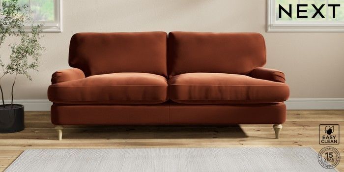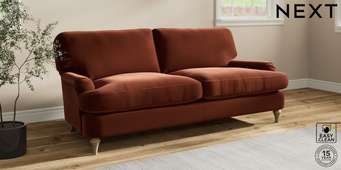 7.2.10 Sadie Deep Relaxed Sit 3 Seater Sofa Plush Velvet Easy Clean Ginger Orange High Slim Turned - Light | Made Click here to use our website with more accessibility support, for example screen readers