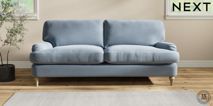 7.2.10 Sadie Deep Relaxed Sit 3 Seater Sofa Relaxed Linen Look Mid Blue High Slim Turned - Light | Made Click here to use our website with more accessibility support, for example screen readers