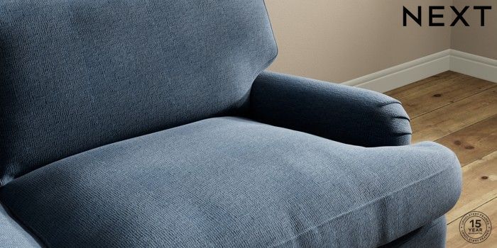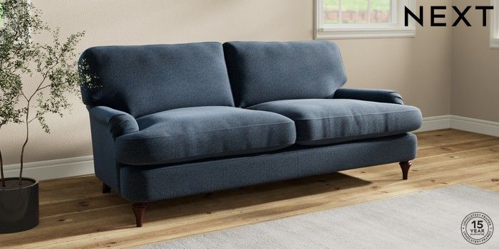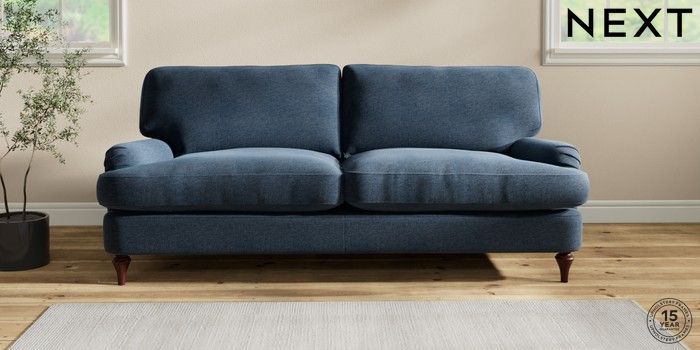 7.2.10 Sadie Deep Relaxed Sit 3 Seater Sofa Ripple Chenille Dark Blue High Slim Turned - Dark Brown | Made Click here to use our website with more accessibility support, for example screen readers