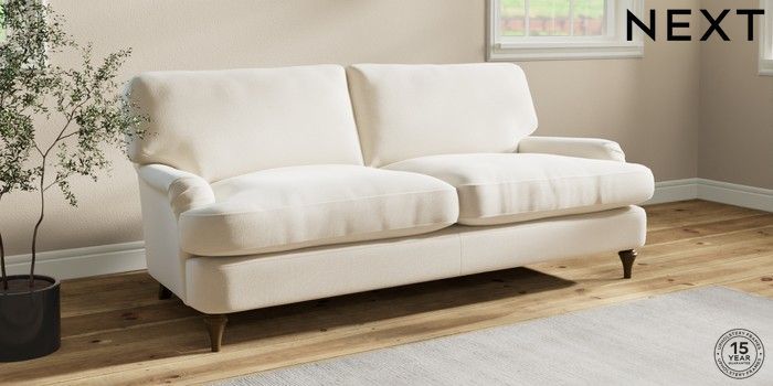 7.2.10 Sadie Deep Relaxed Sit 3 Seater Sofa Ripple Chenille Oyster High Slim Turned - Mid | Made Click here to use our website with more accessibility support, for example screen readers