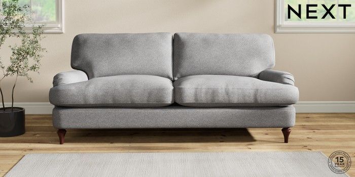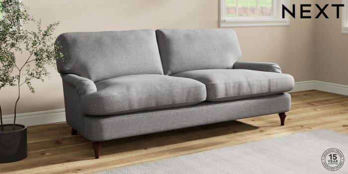 7.2.10 Sadie Deep Relaxed Sit 3 Seater Sofa Studio Chenille Mid Grey High Slim Turned - Dark Brown | Made Click here to use our website with more accessibility support, for example screen readers