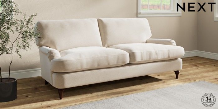 7.2.10 Sadie Deep Relaxed Sit 3 Seater Sofa Studio Chenille Oyster High Slim Turned - Dark Brown | Made Click here to use our website with more accessibility support, for example screen readers